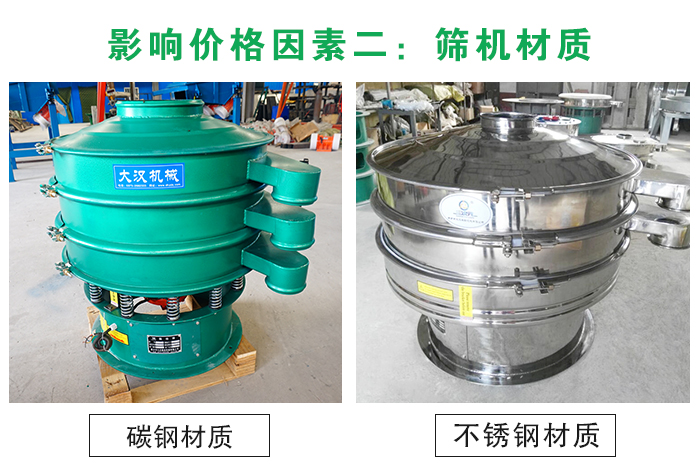 煙草振動(dòng)篩分機(jī)材質(zhì)分為碳鋼與不銹鋼兩種,不同的材質(zhì)價(jià)格上也相差幾百到上千元不等。對(duì)于煙草篩分衛(wèi)生環(huán)境要求較高的可以使用的不銹鋼材質(zhì),對(duì)于衛(wèi)生環(huán)境要求不高的可以選擇碳鋼材質(zhì)。