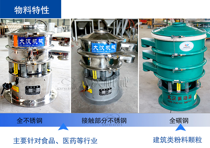您可根據(jù)物料特性主要是決定您是適用哪種材質(zhì)的篩分機(jī)